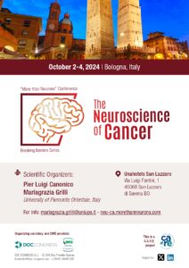 Dal 2 al 4 ottobre presso il complesso Unahotels di San Lazzaro di Savena (BO) si terrà la 4ª edizione di “More than neurons”, un evento scientifico che quest’anno si concentrerà sul tema “The neuroscience of cancer“. Ricercatori e ricercatrici di tutto il mondo si riuniranno per discutere le ultime scoperte su come il cervello e il cancro interagiscono tra loro.